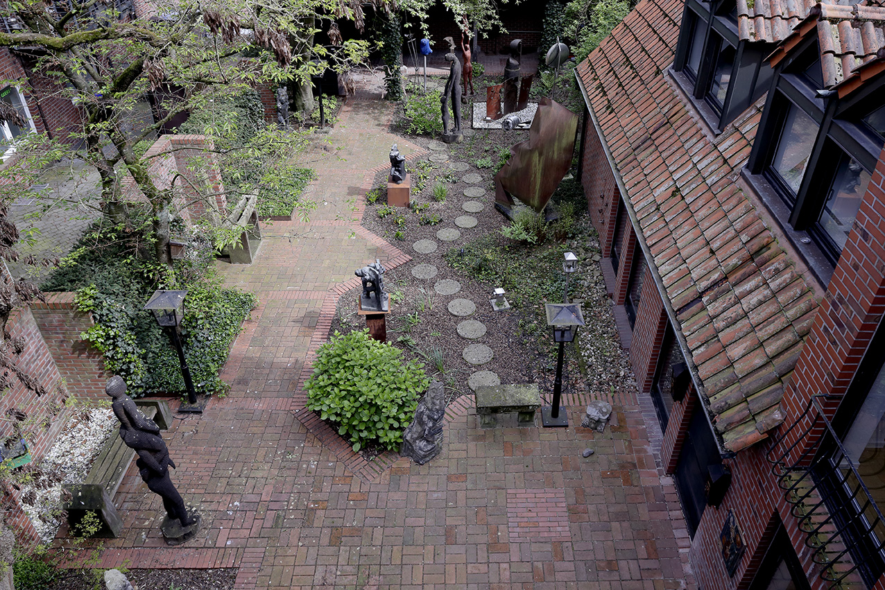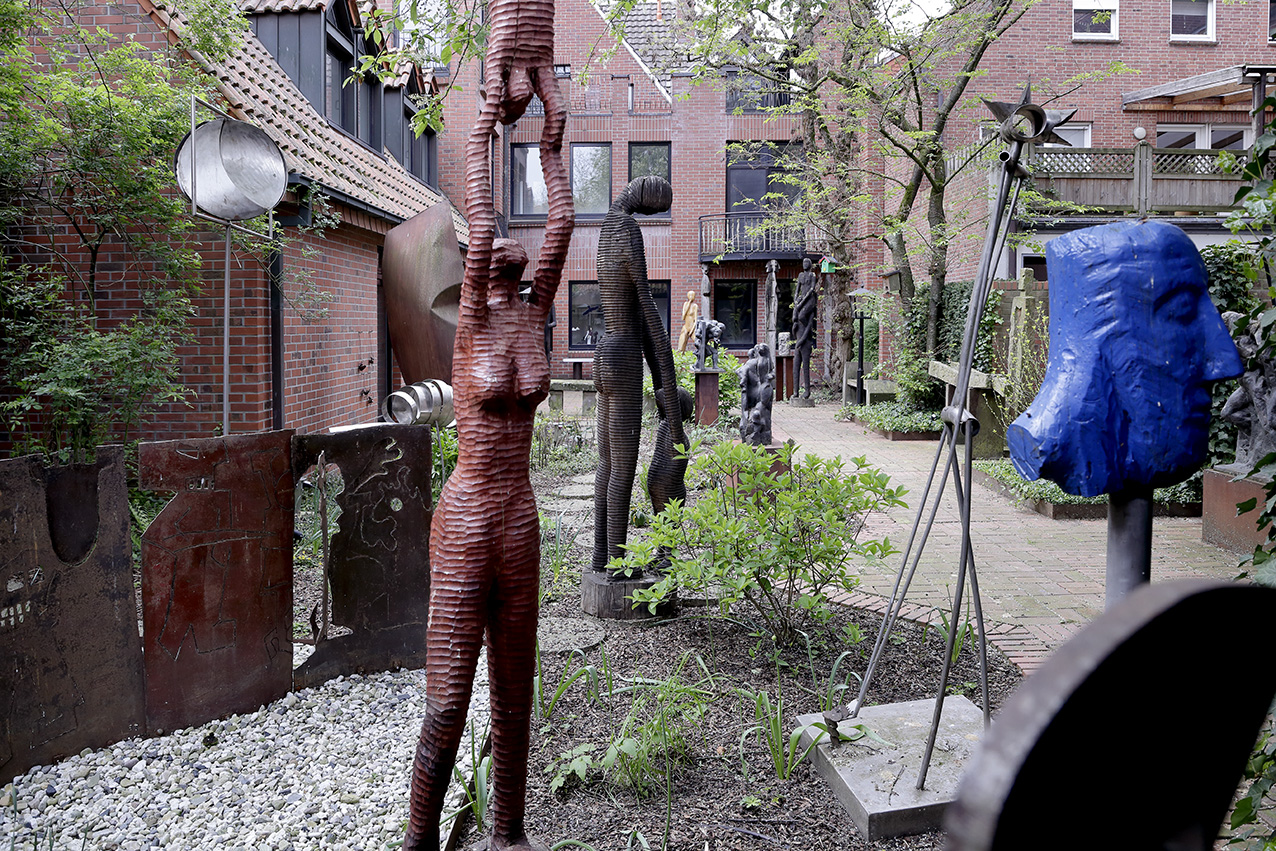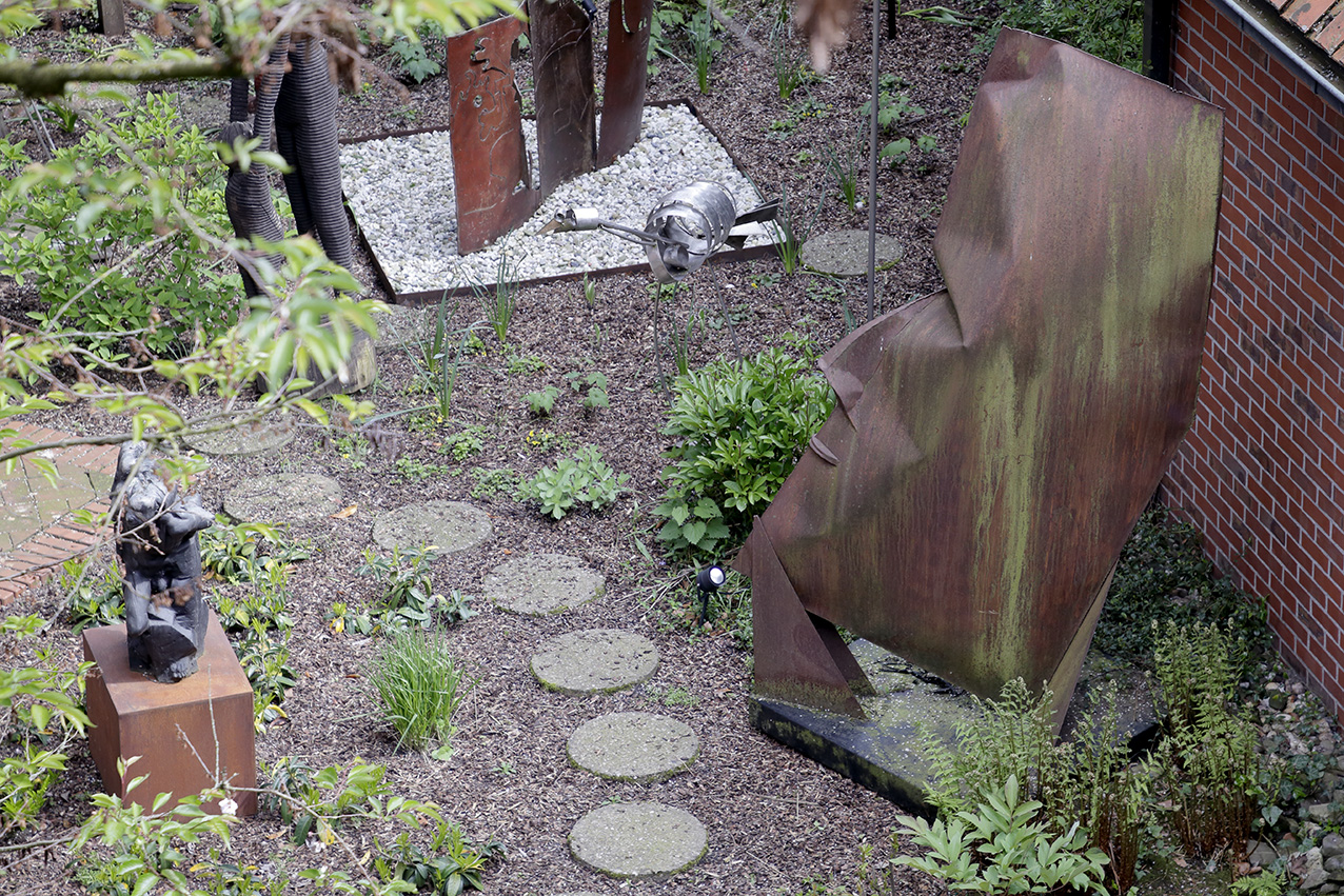 Eine grüne Oase inmitten des Eper Ortskerns. So hat der Stifter Georg van Almsick bereits in den 1980er Jahren den kleinen, aber feinen Kunstgarten angelegt. Fest installierten Kunstobjekte aus dem Nachlass des Stifters erinnern wurden mit dem Umbau der Galerie und der Neugestaltung des Außenbereichs neu in Szene gesetzt. Zudem bietet der Garten eine Veranstaltungsfläche und Raum für weitere Kunstobjekte, z.B. im Rahmen von Skulpturenausstellungen. Schau doch mal vorbei und genieße dieses verwunschene Plätzchen.